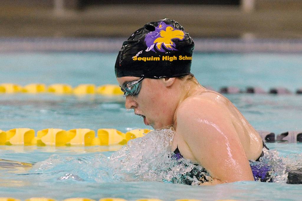 Coffman posted Sequim’s first state 2A meet-qualifying mark of the season with a 5:42 finish in the 500 free. She also qualified for districts in the 100 yard backstroke with a 1:10 finish, placing second.