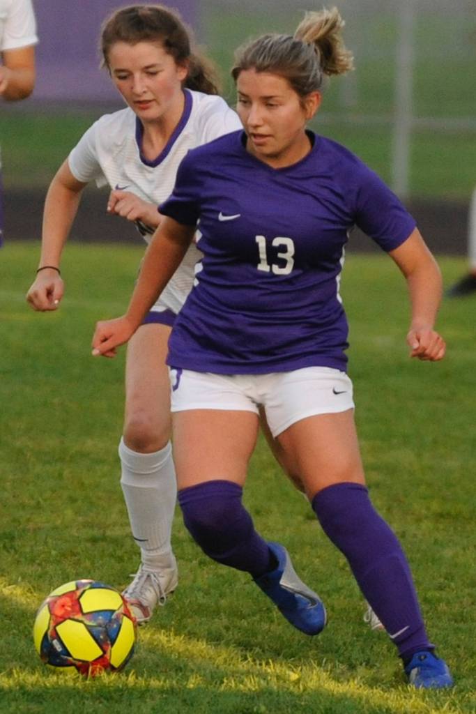 Sequim made several consecutive forays into the Viking’s third of the field to create attacking chances, one of which ended with sophomore forward Hannah Wagner, who was filling in for an ill Daisy Ryan, getting fouled at the edge of the box by Vikings defender Ashley Castro.