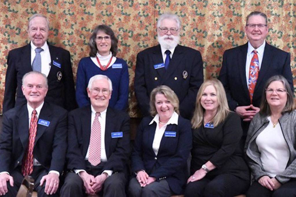 The Sequim Bay Yacht Club recently installed news officers for 2020. They include (front row, from left) commodore Jerry Fine, vice commodore Jerry Oden, rear commodore Anna Richmonde, secretary Diana Leibrich and treasurer Lisa O’Keefe. Pictured with them are (back row, from left) trustees Jim Fitzpatrick, Diane Froula and Ray Mitchell, and retiring commodore Doug Schwarz, retiring commodore. Not pictured are assistant treasurer Mark Lewis and assistant secretary Judy Shanks.