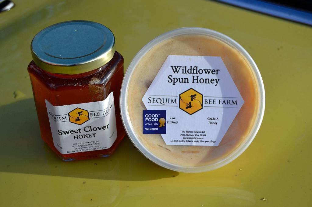 The Dungeness honey is a culmination of honeys from local lavender farms’ honeybee hives that Buddy manages. The Snowberry Rose honey comes from one of the couple’s properties east of Port Angeles.
