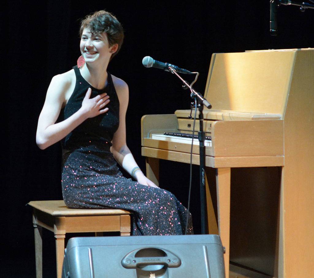Port Angeles Running Start student Katie Cobb won second palce and a $300 scholarship with a vocal/piano performance of “Good Morning.”
