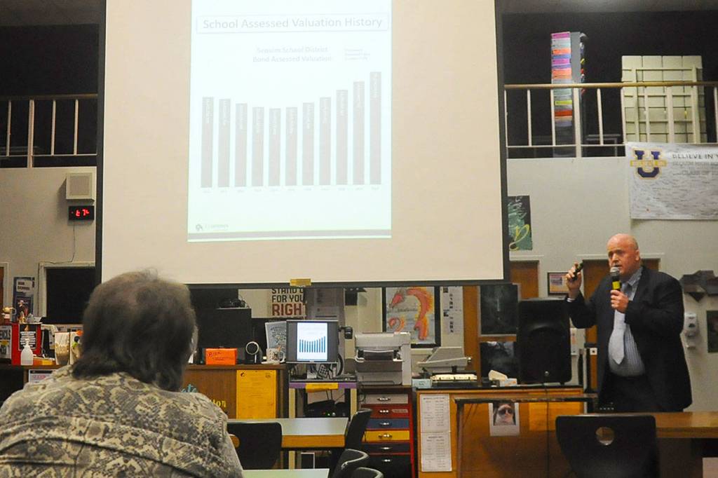 Clark, who in previous meetings indicated he’d like to see a levy or bond measure put to Sequim voters on the November 2020 ballot, reviewed Sequim’s recent bond efforts, had building principals offer insights into their buildings’ specific needs and took comments and questions from the gathered audience gathered.
