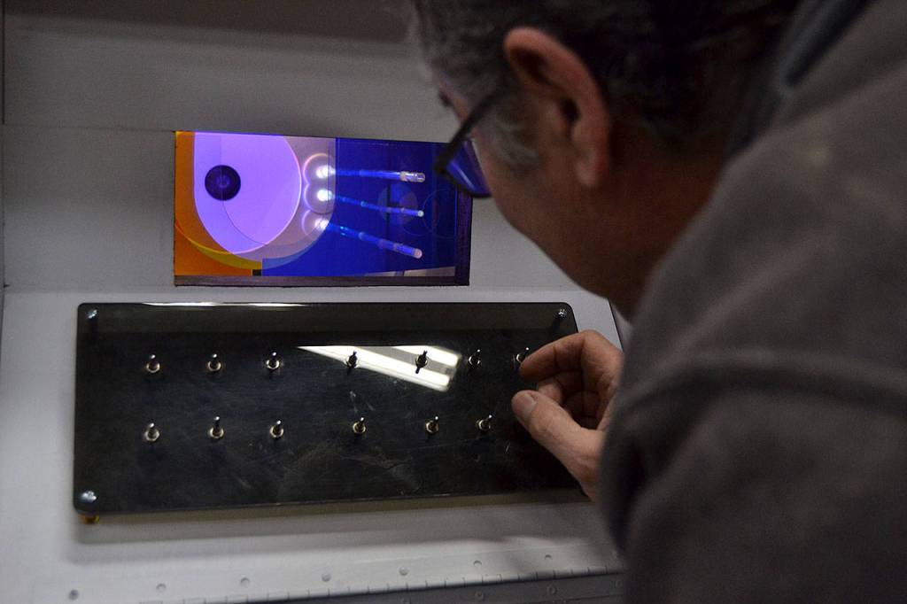 Once inside, visitors can see 10 stations — seven viewing stations, another for mixing blue and yellow light, a kinetic shadow catcher, and artist Craig Robinson painting in ultraviolet light with UV sensitive paints.