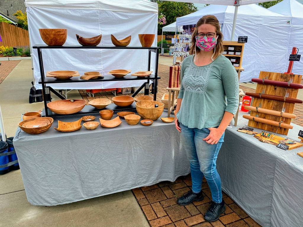 At Sequim Farmers & Artisans Market, you can find Northwest Beach Works’ vibrant display of wooden ballpoint and fountain pens, bowls, rolling pins, bottle stoppers, bottle openers, oven rack pulls, seam rippers and pepper grinders.
