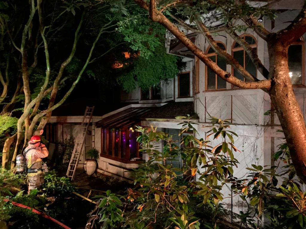 The first crews from the district’s Blyn Station arrived about six minutes after the call; crews soon found flames on all three levels of the home.