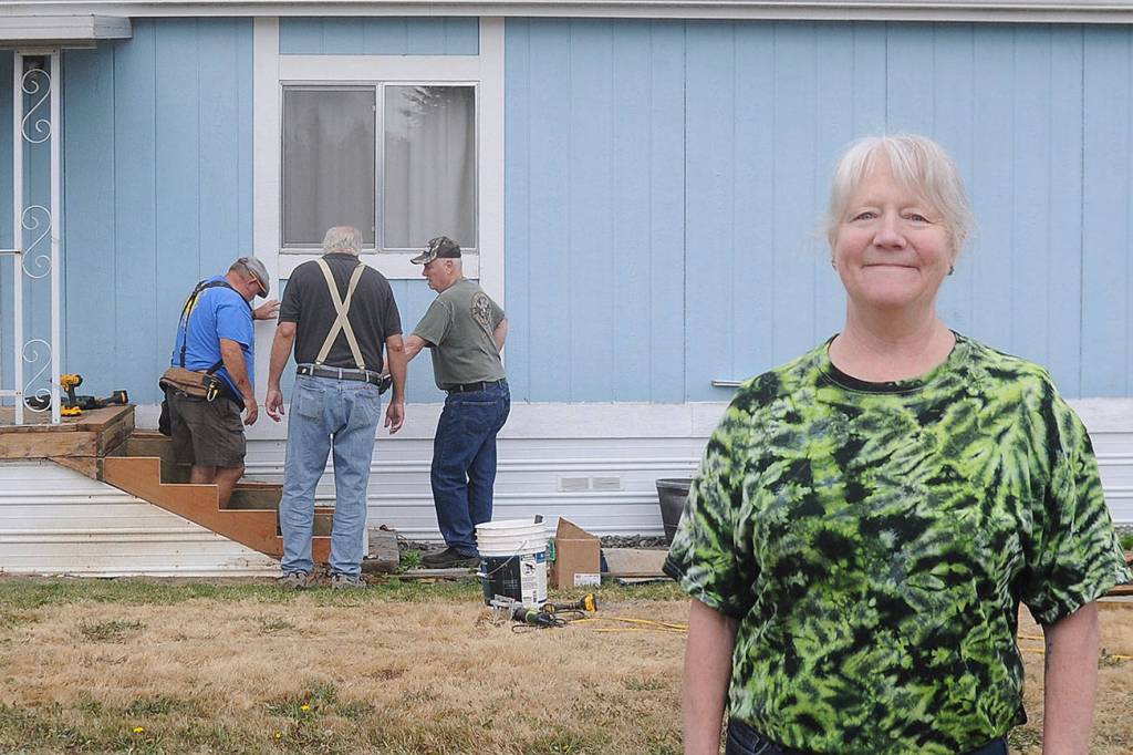 That contact turned into helping hands for Bittick-Humber, who had six Lions — Blakeslee, Edward Alders, Bill Billieu, George Dooley, John Riley and Steve Sahnow — at here door Monday morning, giving the Sequim resident a new set of stairs.