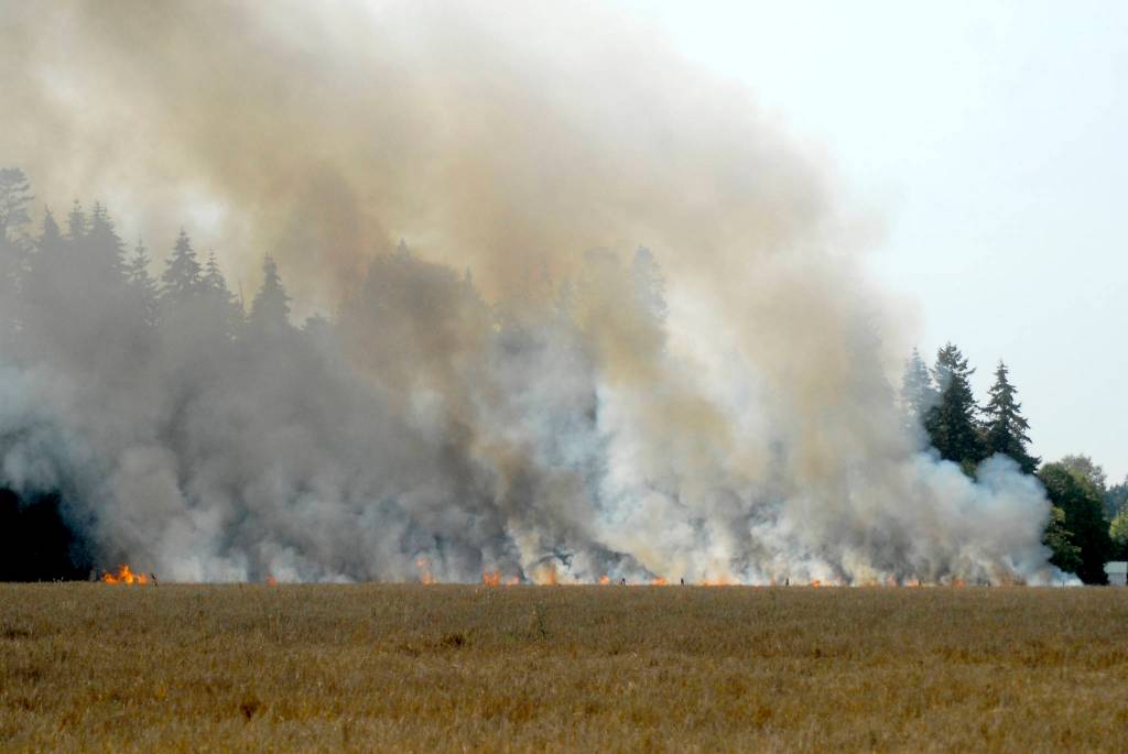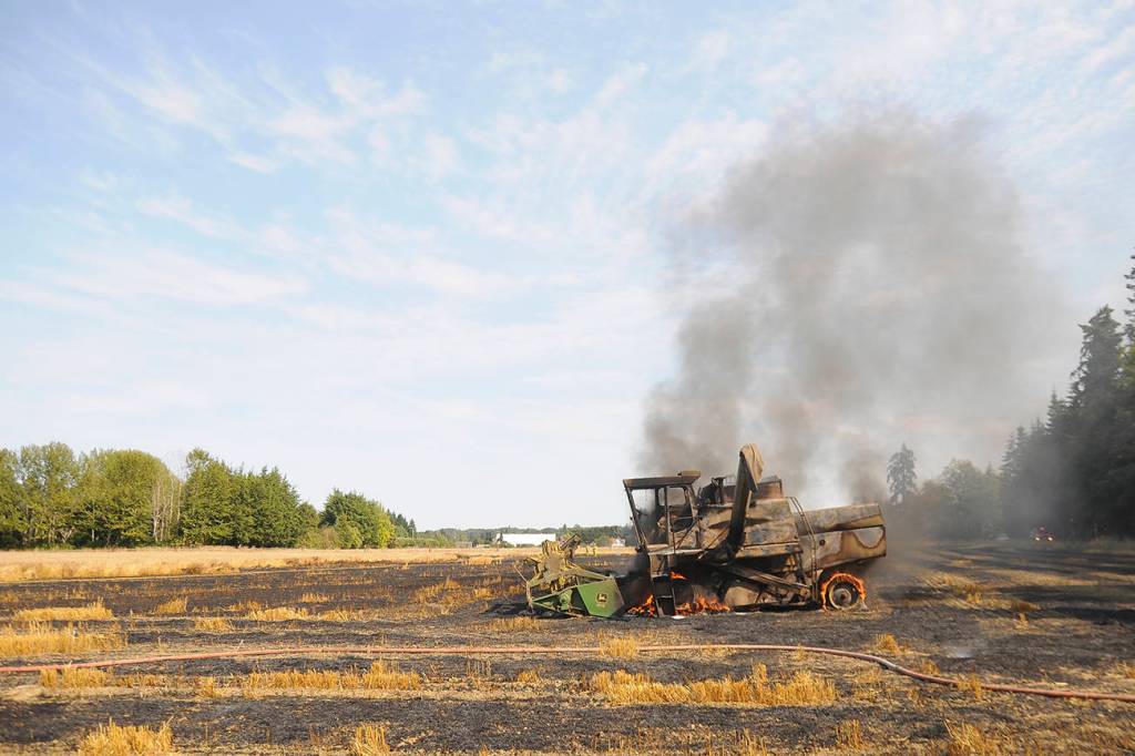 Combine fire ignites field blaze near Sequim airport