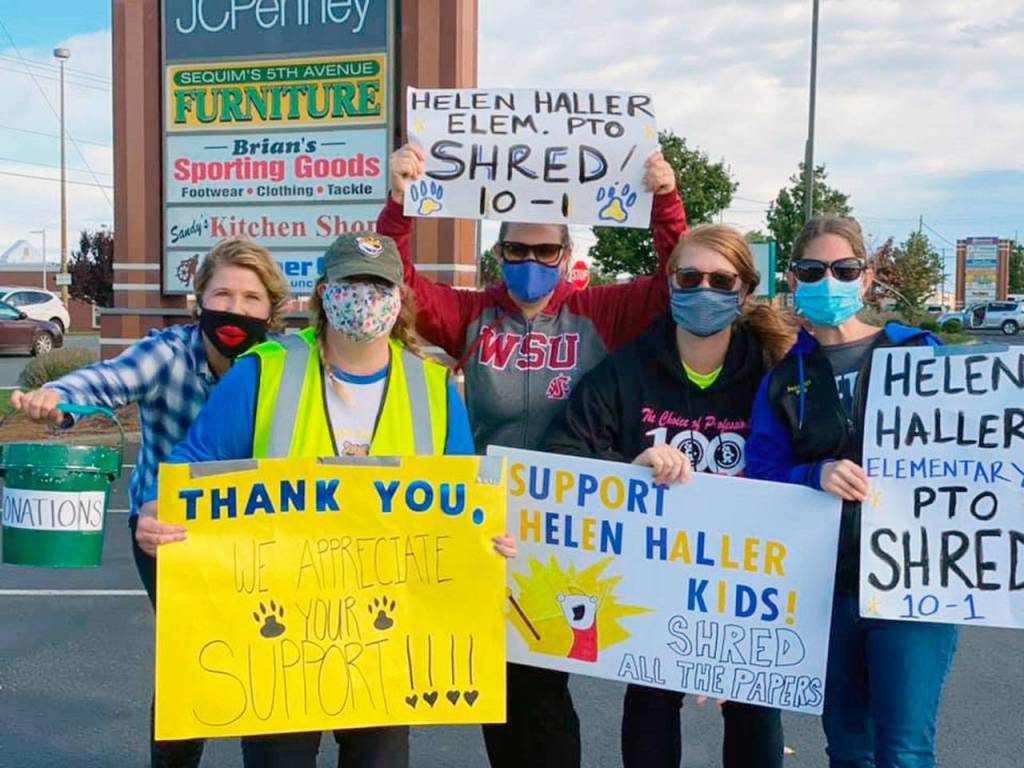 Board members of the Helen Haller Elementary Parent-Teacher Organization celebrate a successful shred event on Oct. 10. The group, along with volunteers, raised $2,727 to help fund school programs and projects during the school year. Pictured, from left, are Michelle Ridgway, Tennille Bixby, Sarah Castell, Robyn Bacchus and Jenn Lawless. Submitted photo