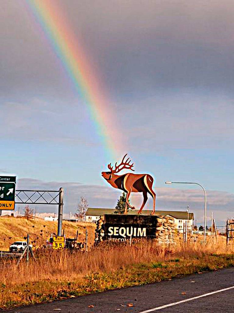Contributor Sara Maney spots this rainbow shining on one of Sequim’s iconic elk on Thursday, Nov. 19.