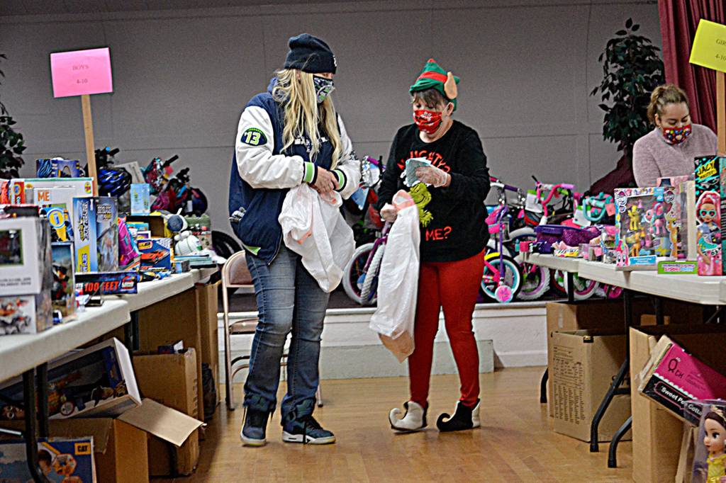 The annual event coordinated by Sequim Community Aid to help in-need families bring toys and other gifts to Sequim area children helped more than 100 families on Dec. 9, organizers said.