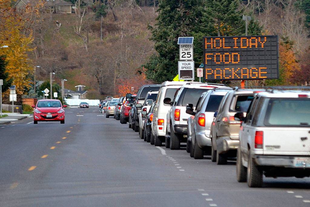 Similar to Thanksgiving’s event, locals can drive through Carrie Blake Community Park to receive food for the Christmas season courtesy of the Sequim Food Bank.