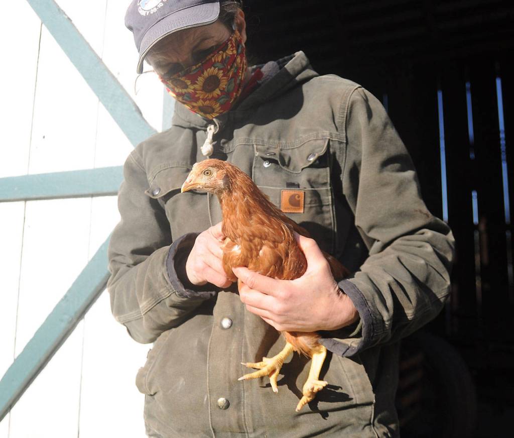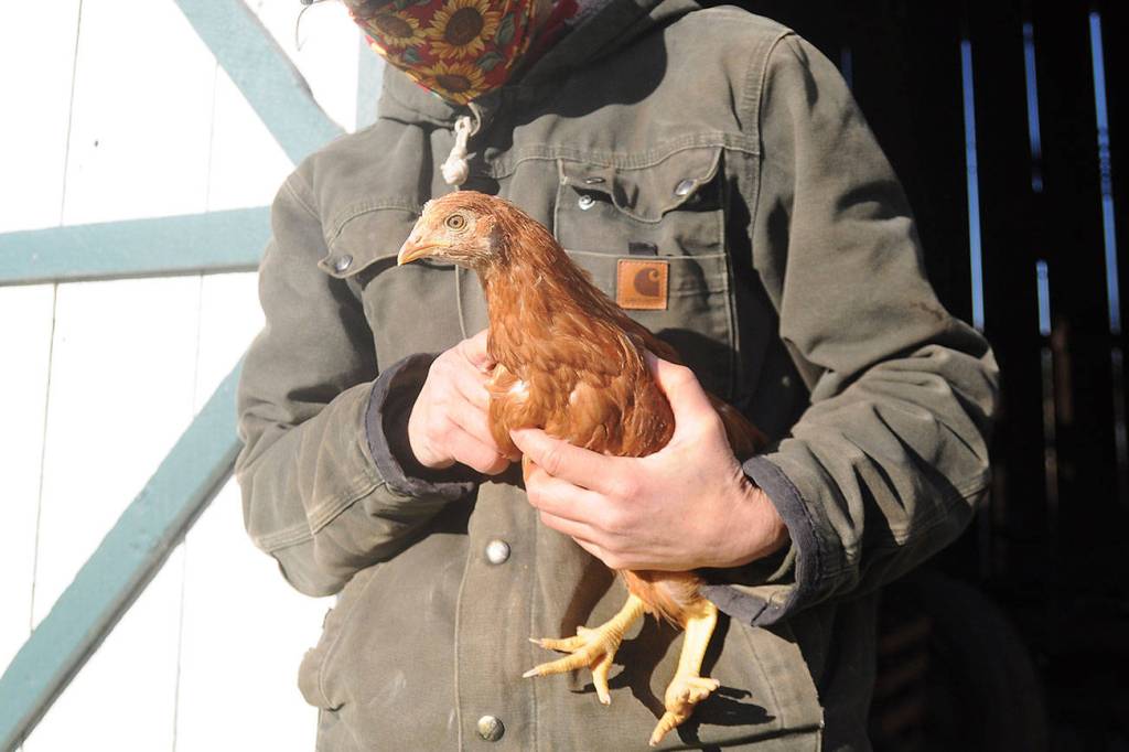 Jennifer Jabs co-owns The Farm in Sequim off Sequim-Dungeness Way, where she helps raise hundreds of chickens for eggs.