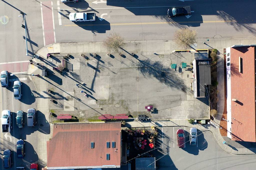 Leaders with the city’s arts, parks and public works departments look to redesign Centennial Place — the lot on the northeast corner at the Washington Street/Sequim Avenue intersection — with public input over the next two years.