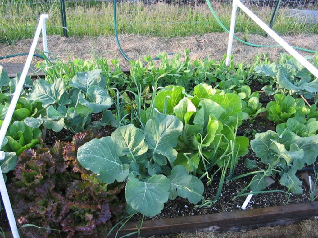 Vegetables are planted in numbers based on their final size, the larger the vegetable, the smaller the number per square foot. Where plants need large spaces between them, consider sowing a fast growing inter-crop such as radishes or baby salad mix in these spaces. These can be harvested before the larger plants shade out those areas.