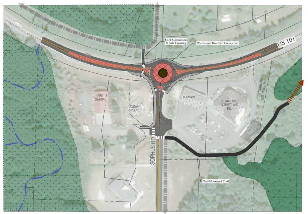 Nesse said a roundabout was WSDOT’s preferred option for the Highway 101/Sophus Road intersection. Other options would be a stoplight or no change, she said.