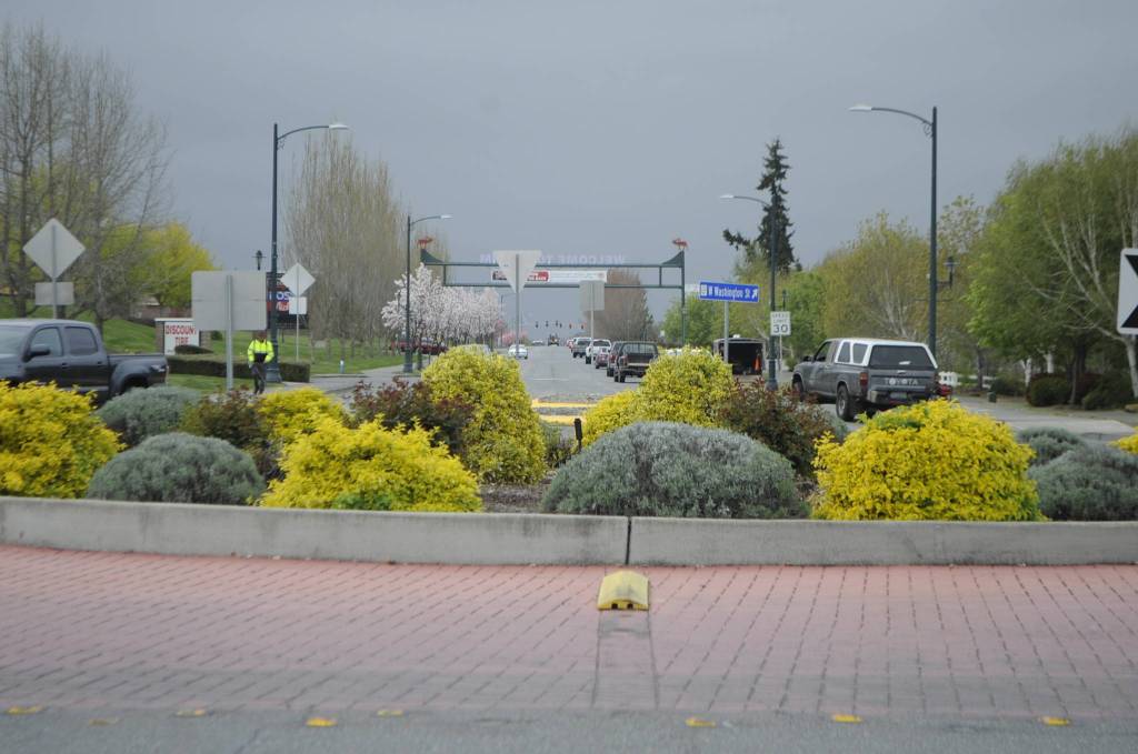 City staff look to pave a portion of Washington Street from the River Round roundabout to the Washington Street roundabout this September using a federal grant. Sequim Gazette photo by Matthew Nash