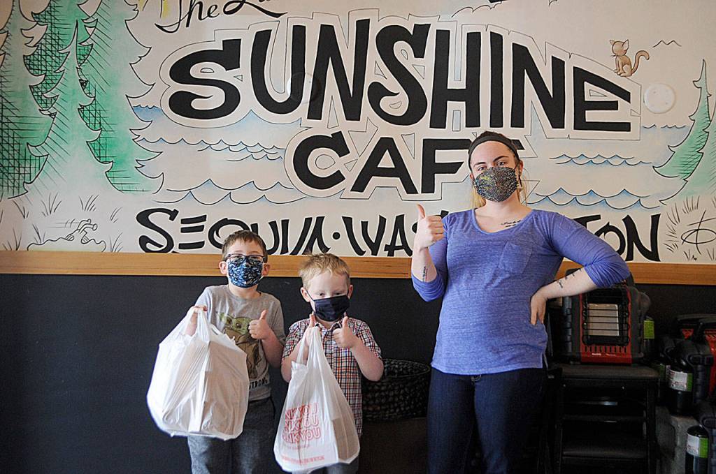 On a recent excursion around town for the Sequim Sunshine Festival, my boys and I met Megan Sias, a server at Sunshine Café, during a scavenger hunt. As custom, I got a picture of my boys at all the landmarks and Megan was happy to step in for a photo with them. She tells me it would be the first time she’s appeared in a newspaper.