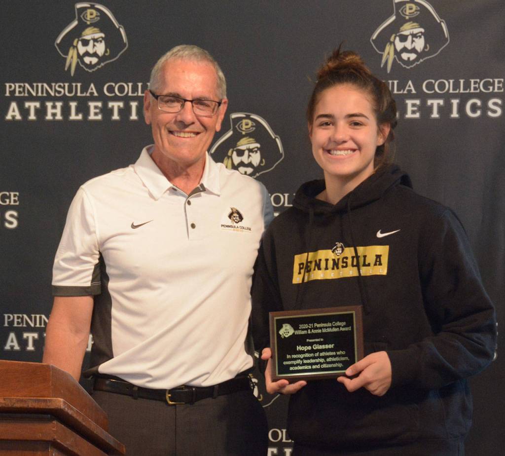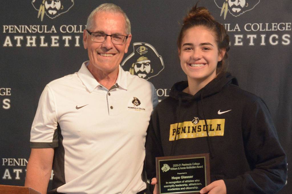 Sequim’s Hope Glasser and Nordland’s Grace Johnson were among the six athletic award winners announced by the Peninsula College athletic department during their awards event last week.