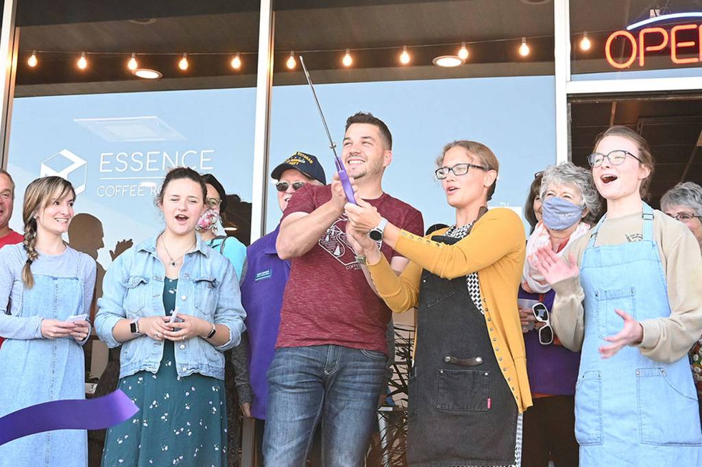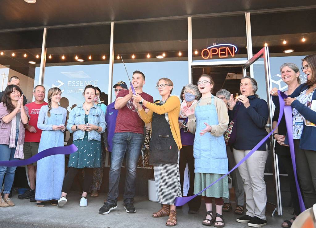 On July 22, staff joined regulars and guests in a celebratory one-year anniversary ribbon cutting at 461 W. Washington St. with representatives of the Sequim-Dungeness Chamber of Commerce. Essence’s first customer (David Rivers, an espresso) was also on hand.