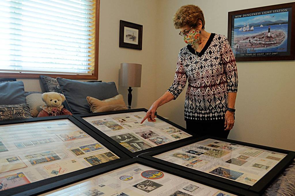 Sequim’s Judy Newblom previews her stamp exhibit on Saturday, a collection centered on women pioneers in the race to space called “Barriers, Breakthrough and Bravery.” She’ll then bring it to the The Seattle Philatelic Exhibition (SEAPEX) on Sept. 10-12 in Tukwila for judging.