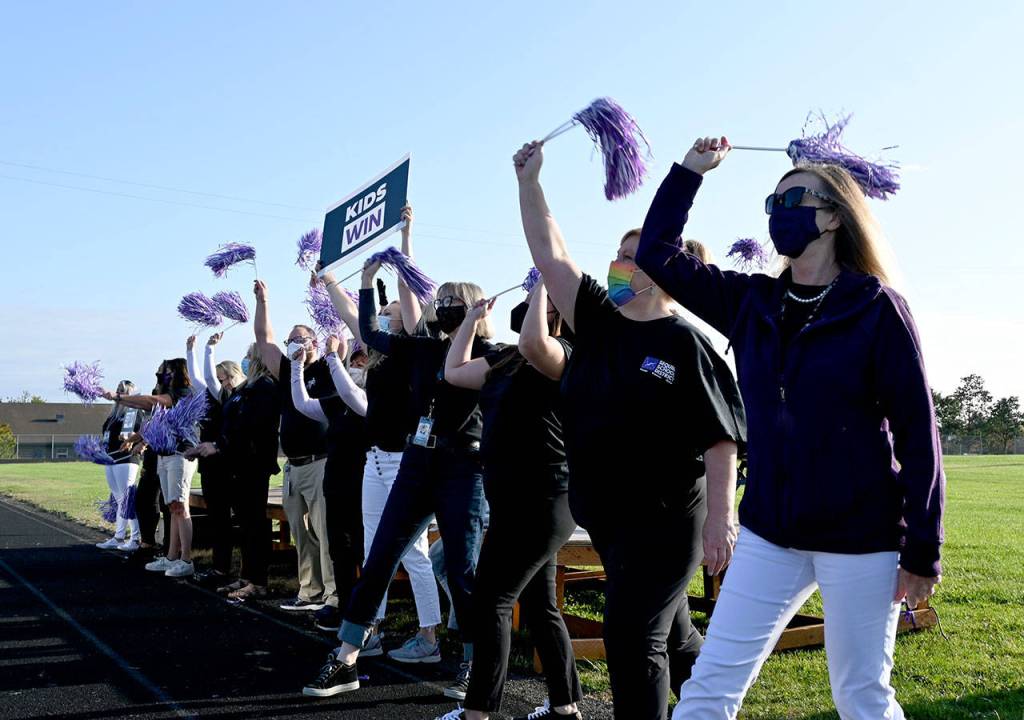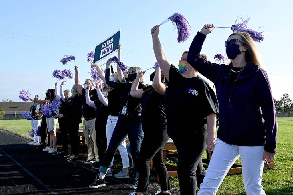 “You’ve had a lot thrown at you,” Sequim school board president Brandino Gibson noted Monday morning, with hundreds of teachers and paraeducators from Sequim’s elementary, middle and high schools, along with custodians, bus drivers, administrators and others.