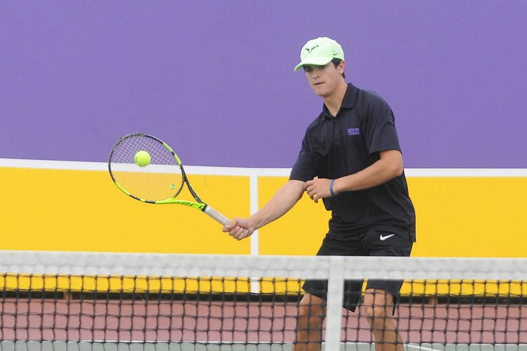 Sequim’s Aason Judd and Tyler Sheffield earned a win in a third set tiebreaker at No. 4 doubles, topping Kingston’s Aidan Materson and Victor Taylor 2-6, 6-4, 10-8.