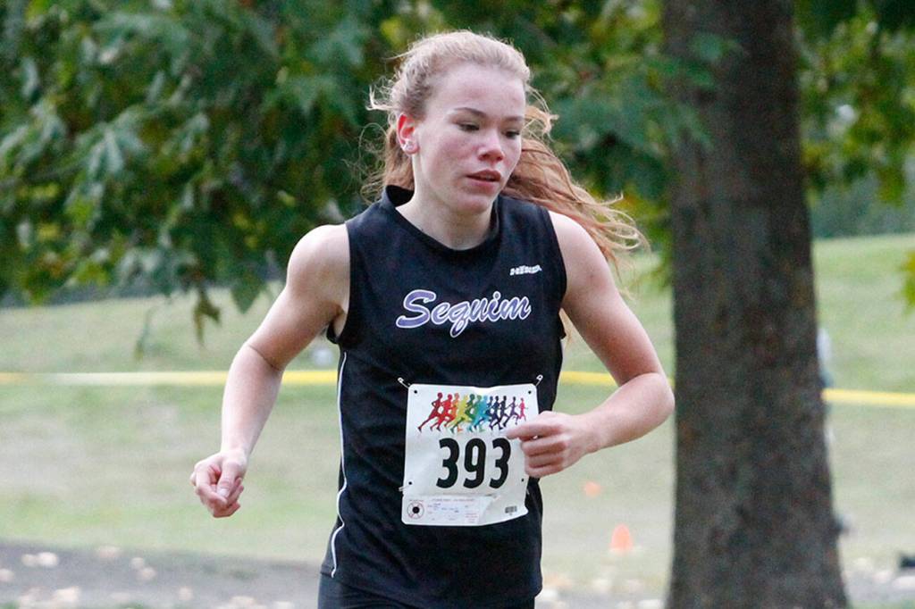 Sequim’s Kaitlyn Bloomenrader was sixth overall, finishing in 20:52 — her second sub-21-minute 5k in as many meets, helping the Wolves fend off North Mason for third place in the team standings.