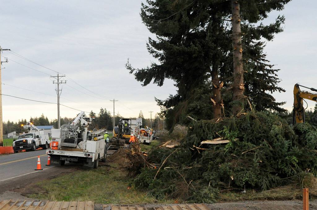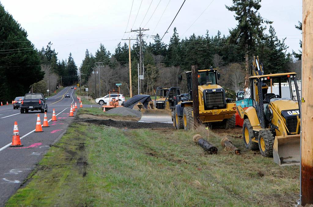 Crews with Interwest Construction began work just east of the planned 160-foot roundabout on Monday, with Clallam County roads staff previously saying traffic will move to one side or the other as construction progresses and no long-term traffic delays anticipated.