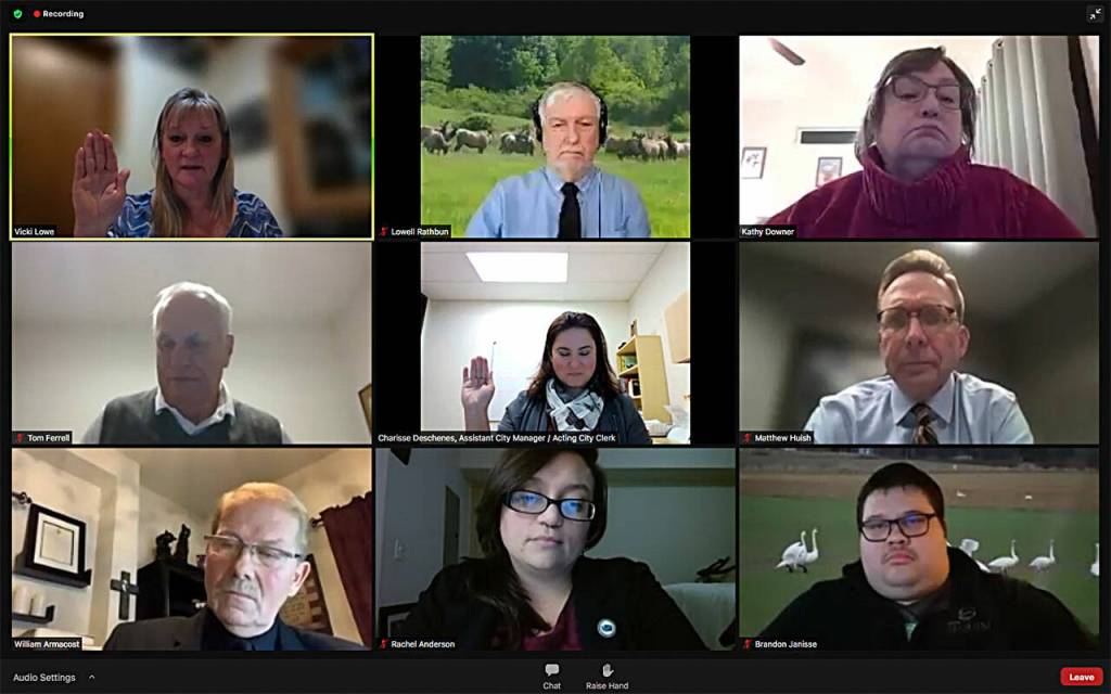For the virtual meeting, assistant city manager Charisse Deschenes — acting as interim city clerk — swore in new councilors Kathy Downer, Vicki Lowe and Lowell Rathbun, along with re-elected councilors Rachel Anderson and Brandon Janisse.