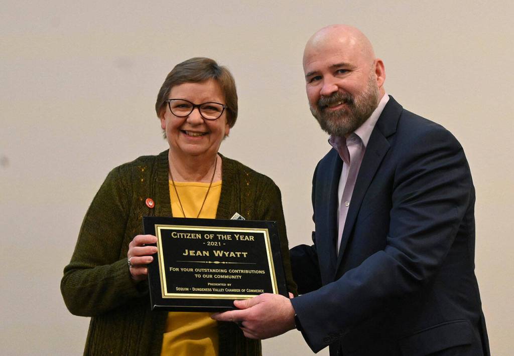 “Volunteering isn’t something I grew up with,” Jean Wyatt said Tuesday, in front of an appreciative audience and the committee members who recently voted her Sequim’s 2021 Citizen of the Year.