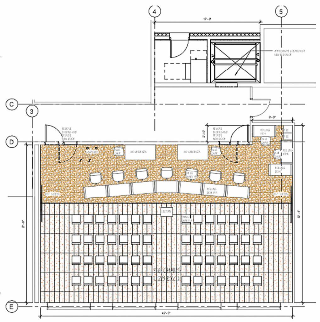 “This is just a first pass,” Marfori told board members, as they looked at schematics of the proposed boardroom, one that would double the capacity for meeting attendees (from 28 to 56) with room for attendees need more space, such as those using a wheelchair.