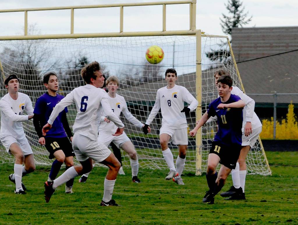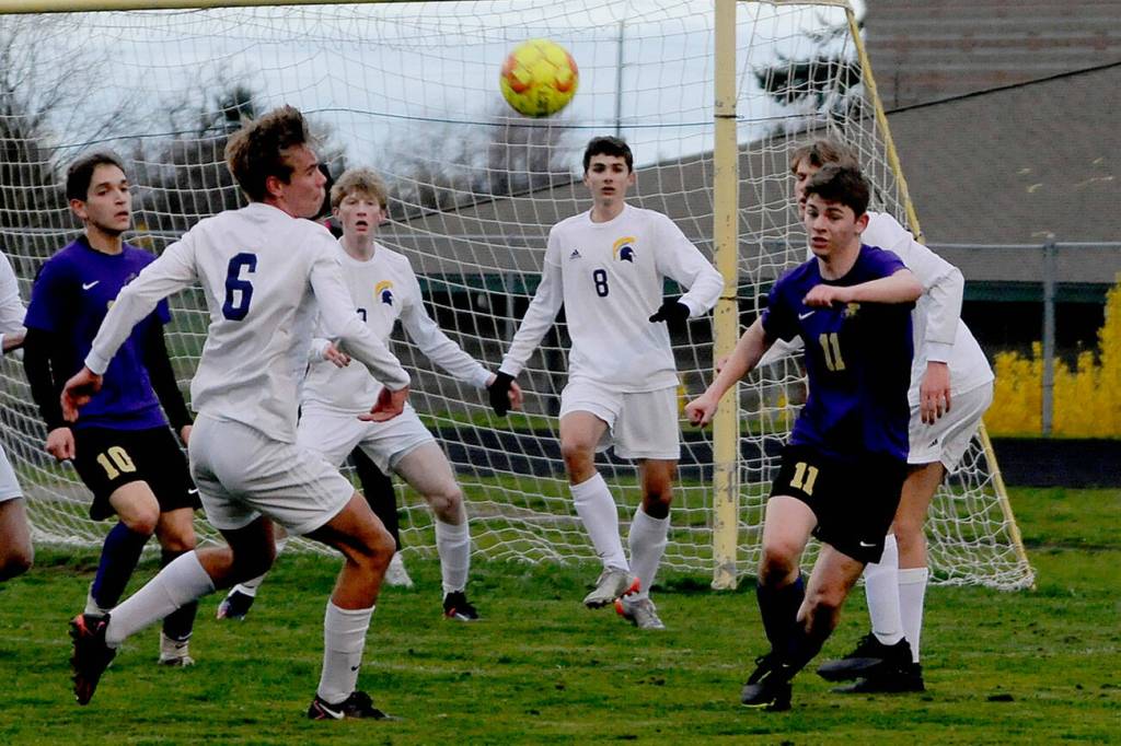 Bainbridge forced Sequim’s defense wider than it wanted as the Spartans triumphed 3-0 over the Wolves in an Olympic League boys soccer loss on March 29.