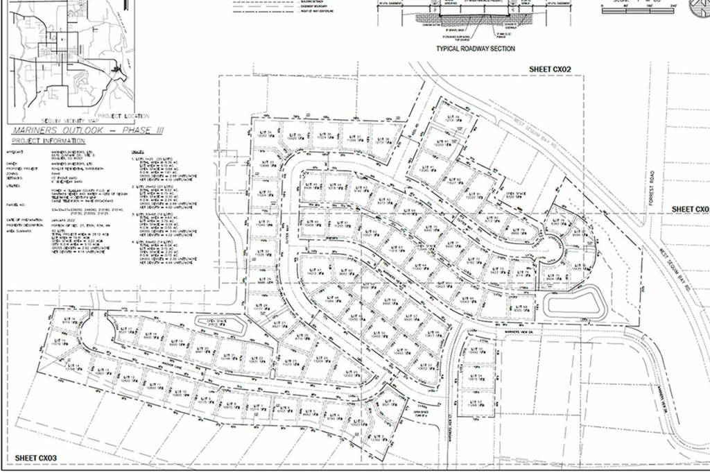 The project’s current access points comes off West Sequim Bay Road onto Mariner’s View Drive, and the second access point, known as Keel Road, would be required northwest of Mariner’s View Drive before phase two begins, pending the fire district’s approval.