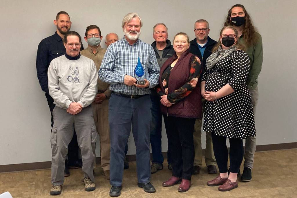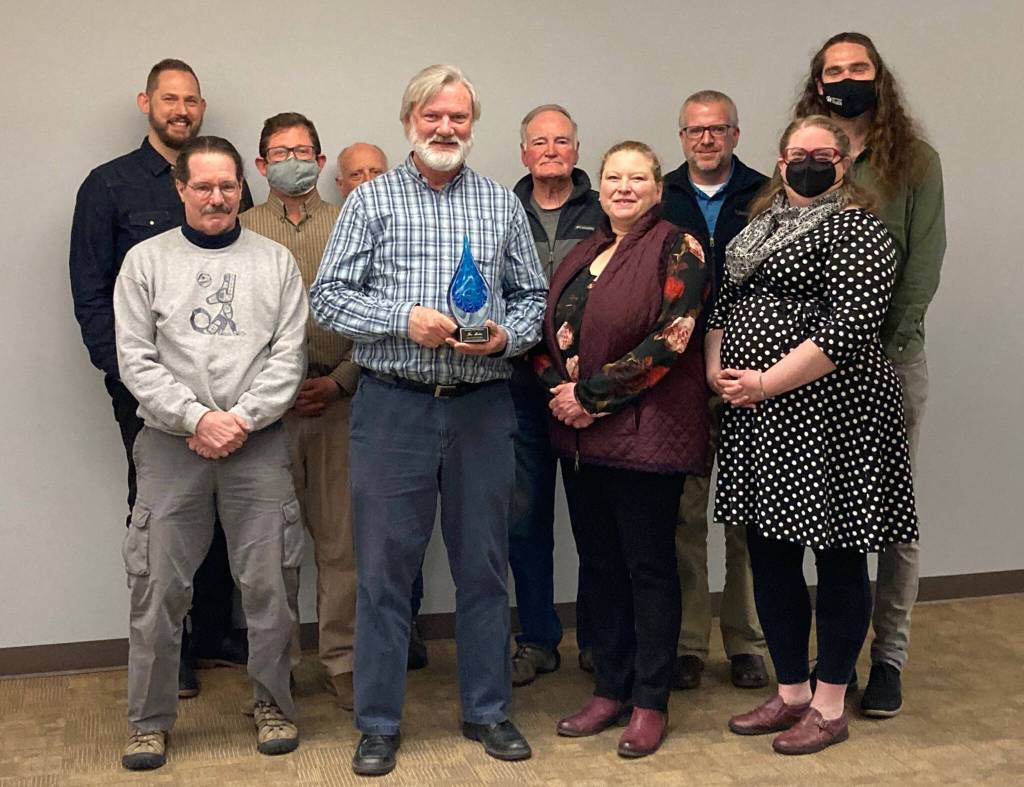 The State Office of Drinking Water and state Department of Health presented the “Grace Under Pressure” award to Water and Wastewater Manager Tom Martin at a meeting of the Clallam County PUD board of commissioners meeting on April 25.