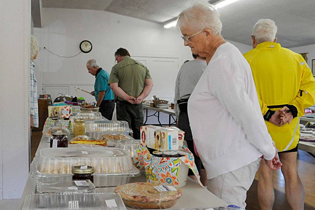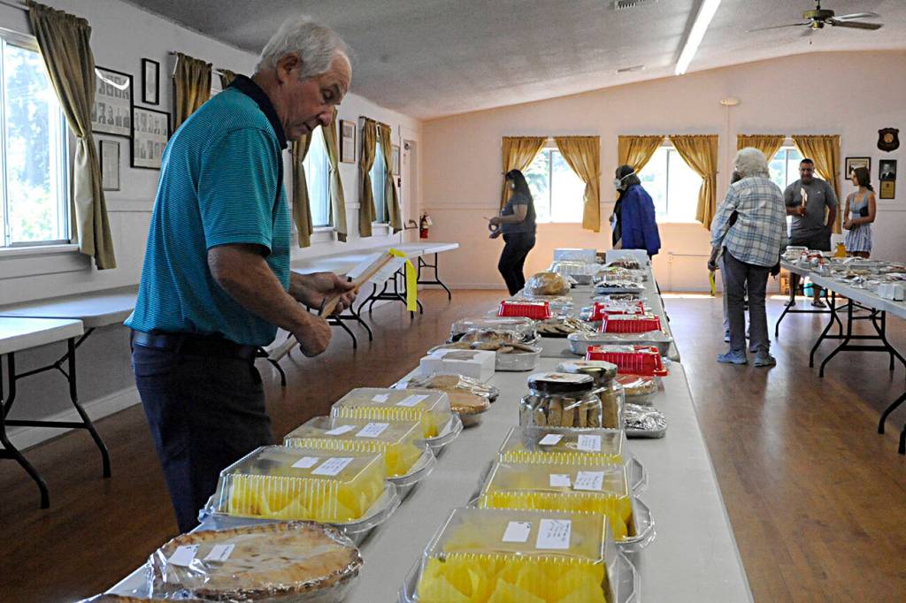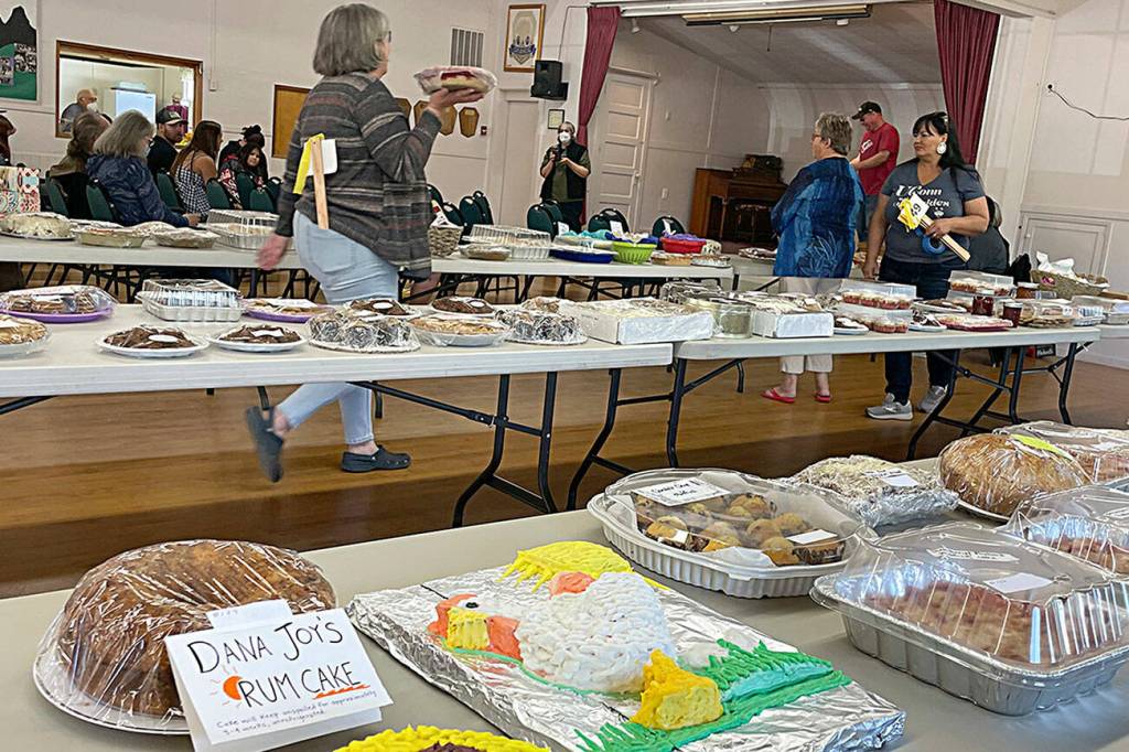 In total, 192 pans of cinnamon rolls, pies, cakes and many varieties of sweets were auctioned off to raise nearly $6,300 inside the Sequim Prairie Grange. Community members and various grange members made the items.