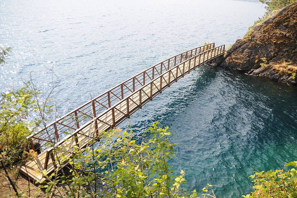 The Devil’s Punchbowl is a narrow, rocky cove on Lake Crescent along the Spruce Railroad Trail. Its depth, which can reach up to 200 feet, makes it a popular swimming and diving area.