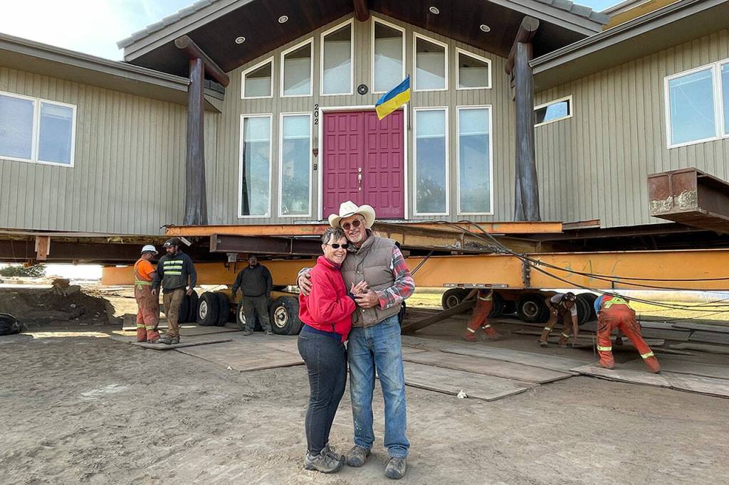 Husband and wife Jim Nichols and Natasha Merkuloff had their two-story, 3,300-square-foot home voluntarily moved about 100 feet from the bluffs on Sept. 16.