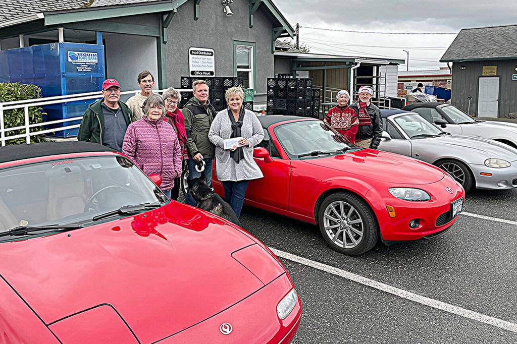 As part of their continuing Christmas tradition, Olympic Peninsula Chapter of Club Miata Northwest club drivers from Joyce, Port Angeles and Sequim took a short trip from their lunch at Mariner Café to the Sequim Food Bank on Dec. 8 to offer monetary and food donations.