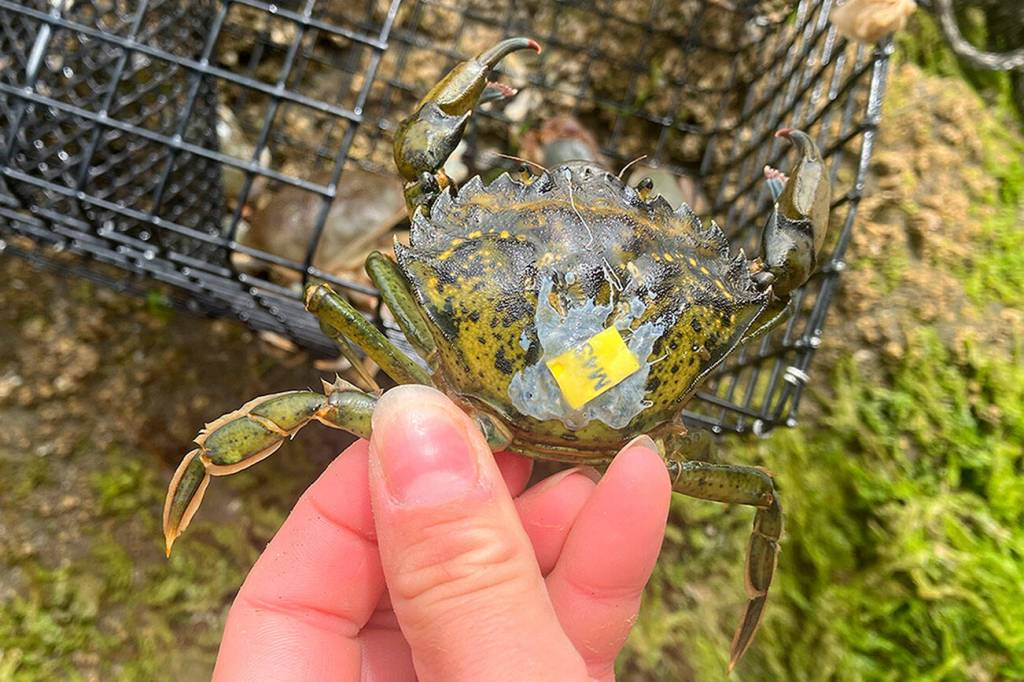 At the Dungeness National Wildlife Refuge, 14 European green crabs were captured this year through trapping led by the U.S. Fish and Wildlife Service.