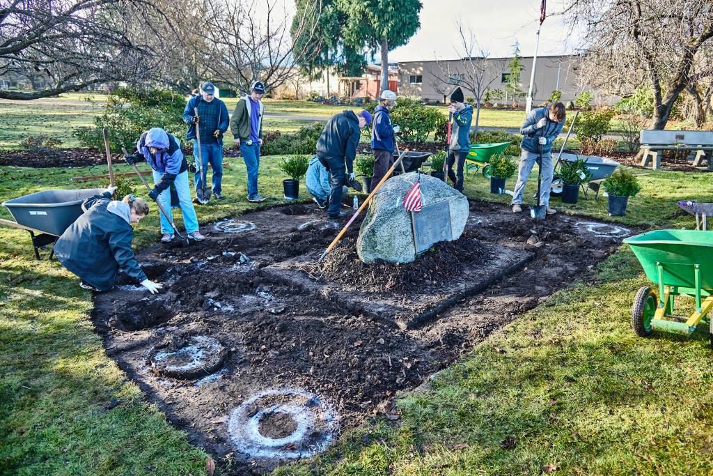 Eagle Scout hopeful Dean Rynearson with Sequim BSA Troop 90 recently coordinated with the Sequim Prairie Garden Club to improve a veterans memorial garden bed at Pioneer Memorial Park.