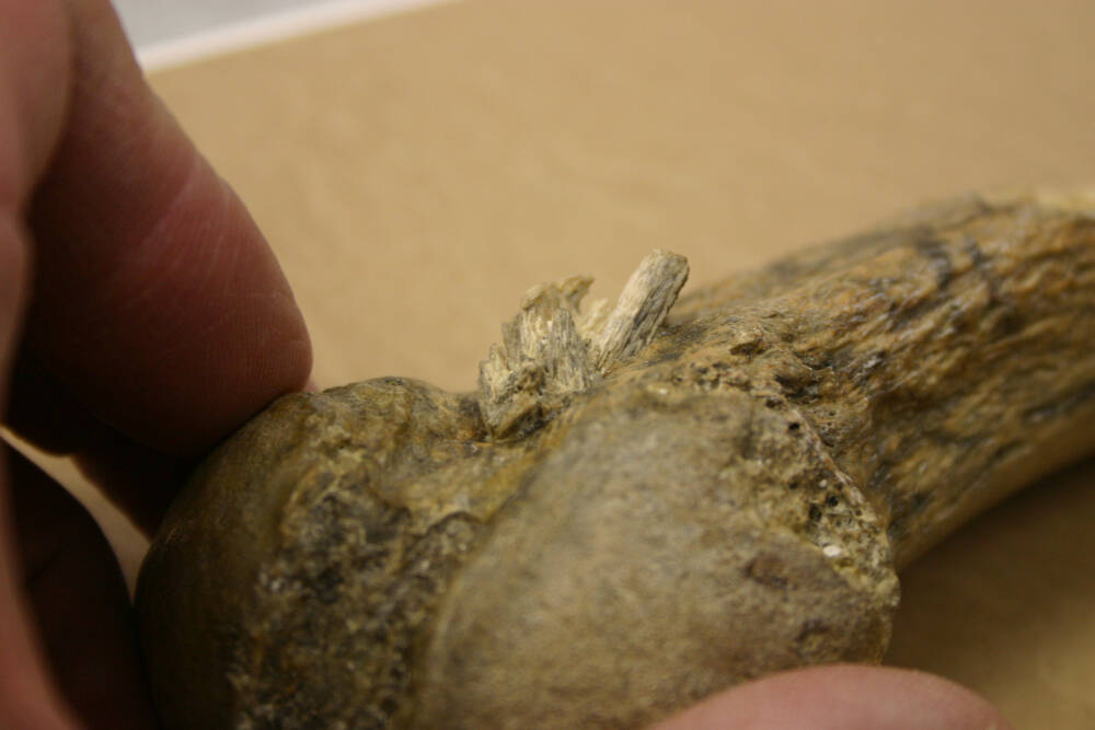 The projectile made from the bone of a mastodon, a prehistoric relative of the elephant.