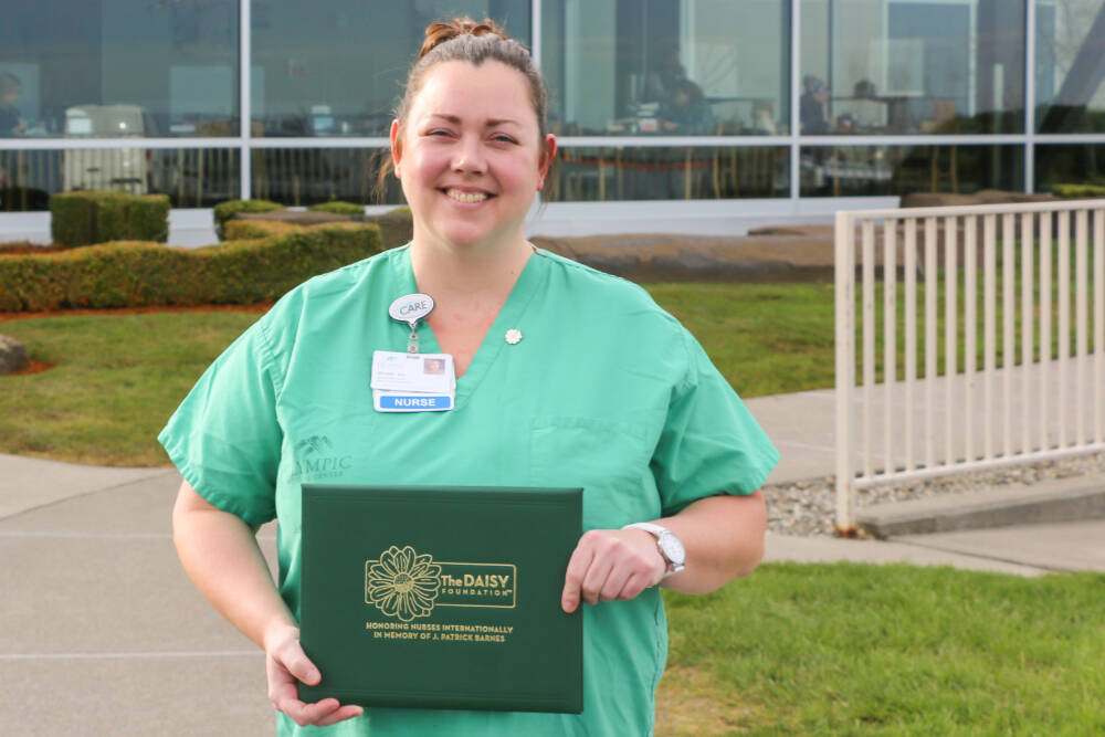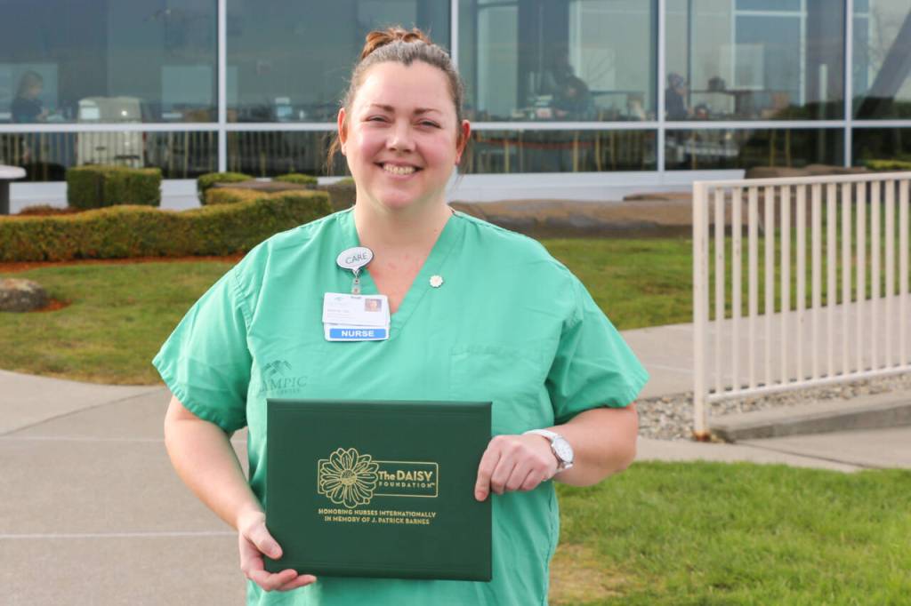 Registered Nurse Marie Flanagan, was recently presented from Olympic Medical Center coworkers with a DAISY Award for Extraordinary Nurses.