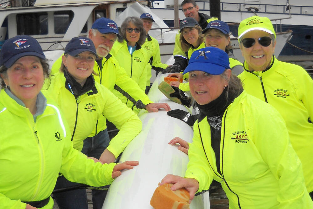 Among the Sequim Bay Yacht Club members assisting with free “Experience Rowing” event on May 7 are, from left, WendyRae Johnson, Christi Jolly, Dennis Miller, Diane Froula, Rudy Heessels, Guy Lawrence, Ginny Moorleghen, Jeanne Neal, Gail Clark and Suzy Narbutovshkih.