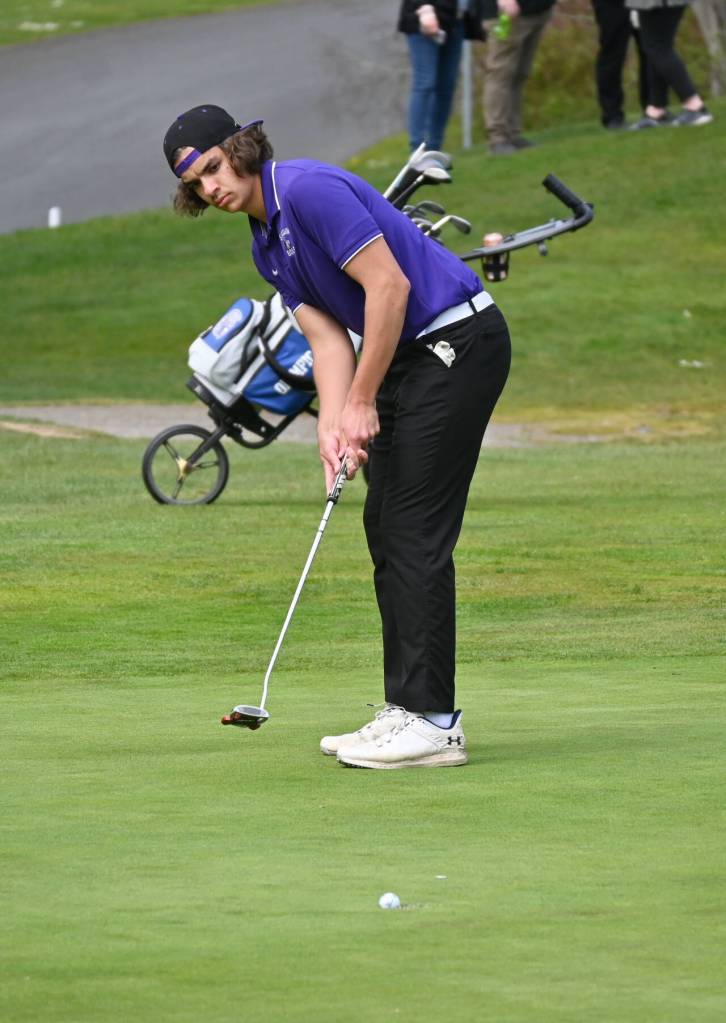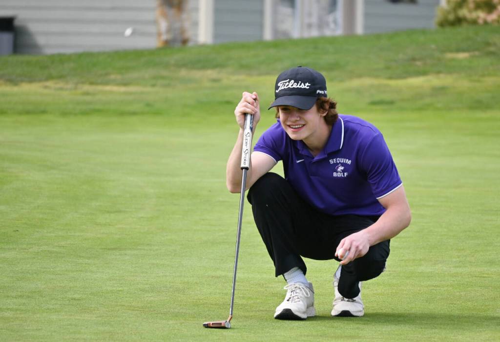Sequim’s boys golf team got strong efforts from Carter Cronin and Lars Wiker in a 20-shot win over Olympic (169-189) on April 26 at Sequim’s The Cedars at Dungeness golf course.
