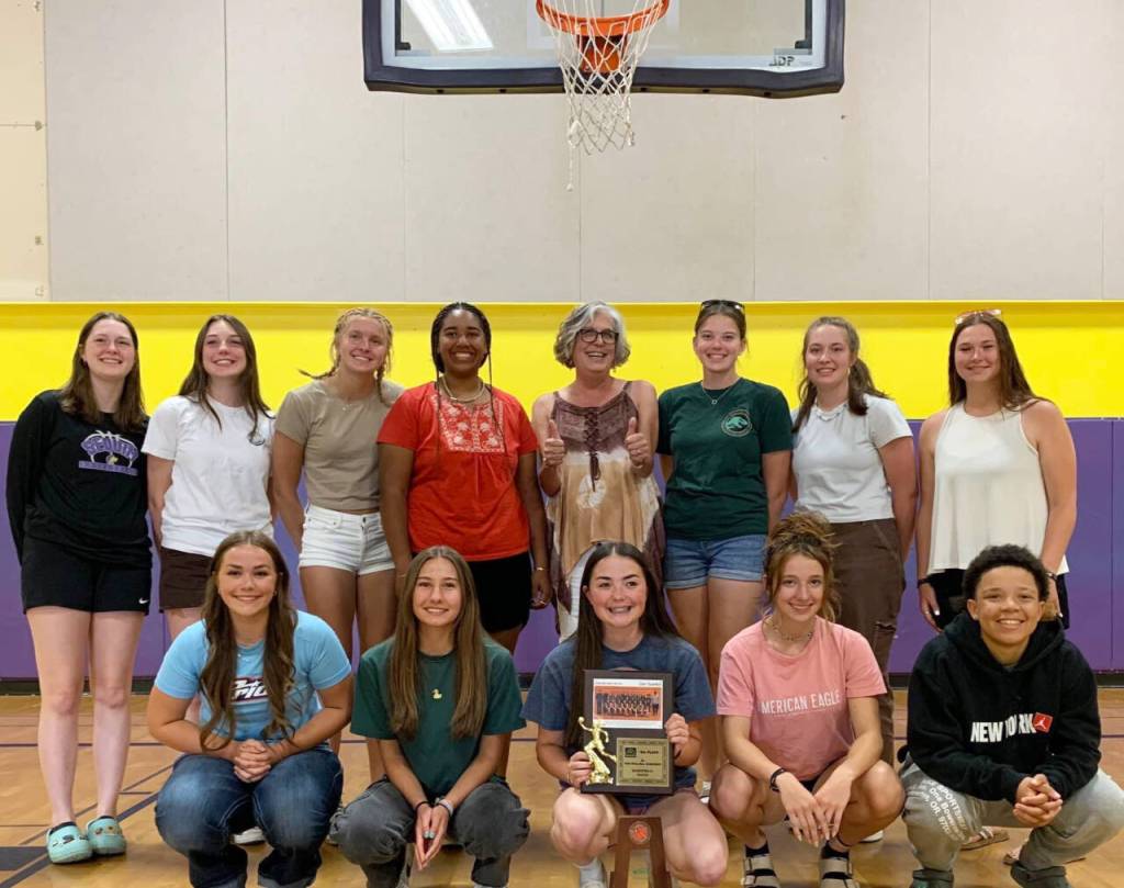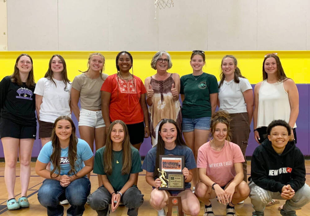 Melinda Lehman Dewey and the Sequim Schools Alumni Association met with members of the 2022-23 Sequim High girls basketball team on June 7 to congratulate them on an outstanding season — one that saw the team go undefeated in league play, a second place at districts and a fourth place finish at the state 2A tournament, the best finish for the Wolves in program history.
