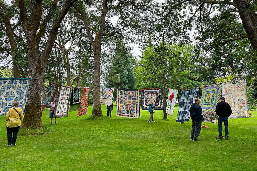 Drawn to the environs as well as the visibility along Washington Street, Sunbonnet Sue Quilt Club members bring their quilts back to Pioneer Memorial Park during Sequim Lavender Weekend.