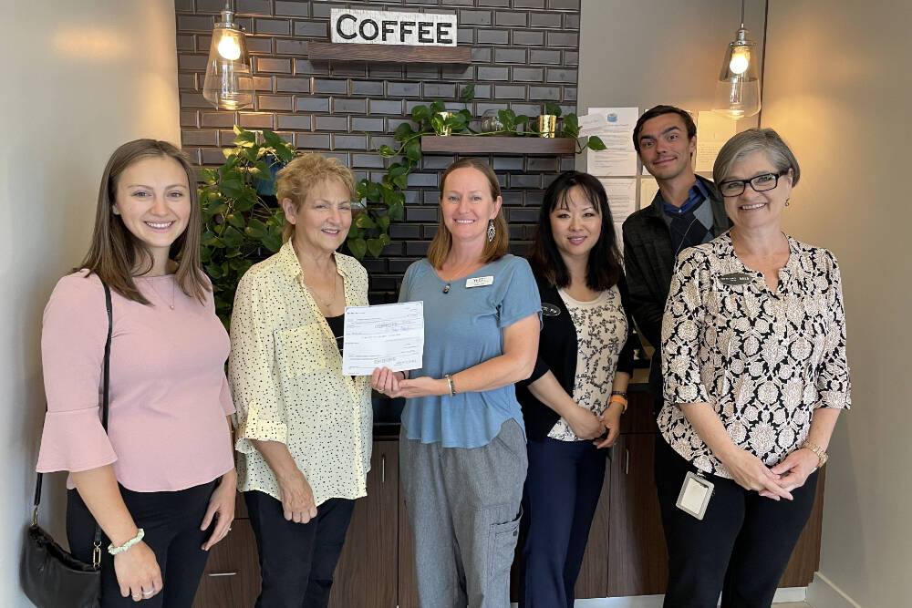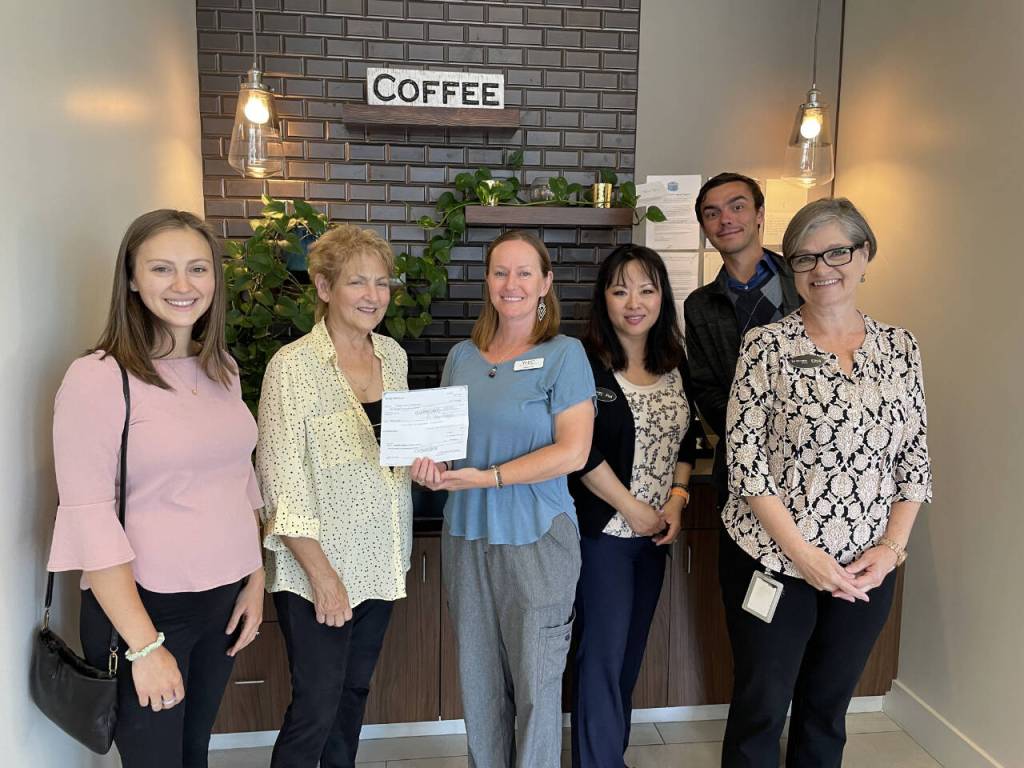 Pictured, from left, are: registered nurse Jannae Shores; VHOCC patient care coordinator Elizabeth Perez; VHOCC clinical team manager Haley Blackburn-Jacobs; 1st Security assistant manager Rui Starrett; personal banker John James, and VP branch manager Elisa Simonsen.