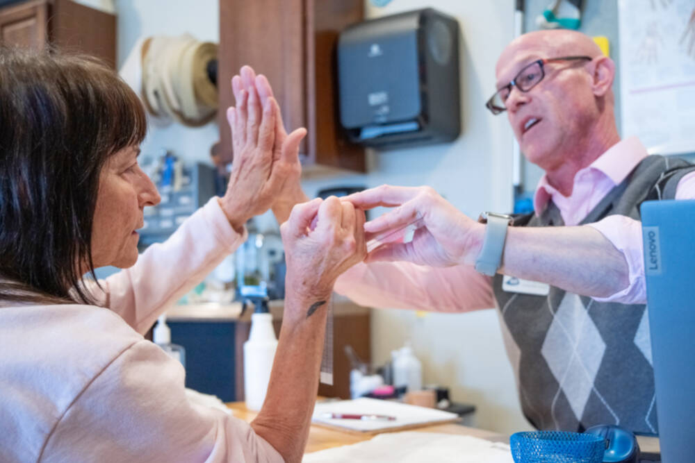 The hand specialist at Olympic Medical Center confirmed the diagnosis and referred him to Staeben as the best hand therapist in the area.