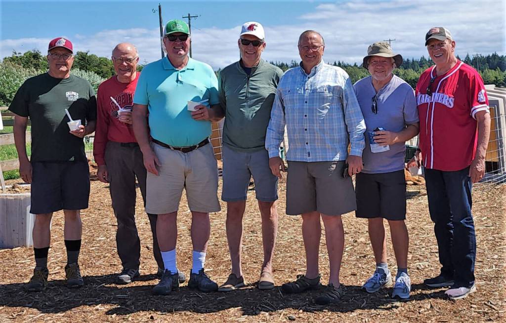Members of the Stephenson South 10th Floor Poker Party — purported to be the longest continuous alumni reunion in Washington State University history — gathered for the group’s 41st-consecutive event in Sequim in July. Pictured, from left, are: Paul Alvestad, Gig Harbor; Bill Brager, Forks; John Colbert, Tonasket; Terry Peterson, Portland, Ore.; Gary O’Malley, Stanley, Idaho; Scott Boyer, Bellevue, and Marc Anderson, Ridgefield.