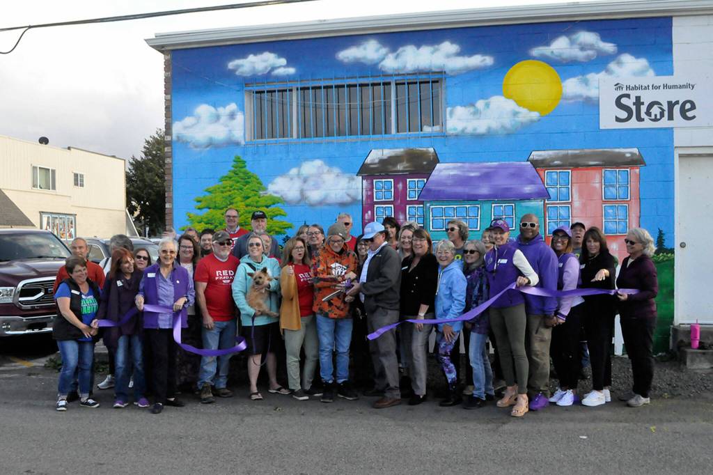 To celebrate the murals, and the store opening in November 2022, Habitat, City of Sequim, and business leaders held a ribbon cutting with the Sequim-Dungeness Valley Chamber of Commerce on Sept. 28.